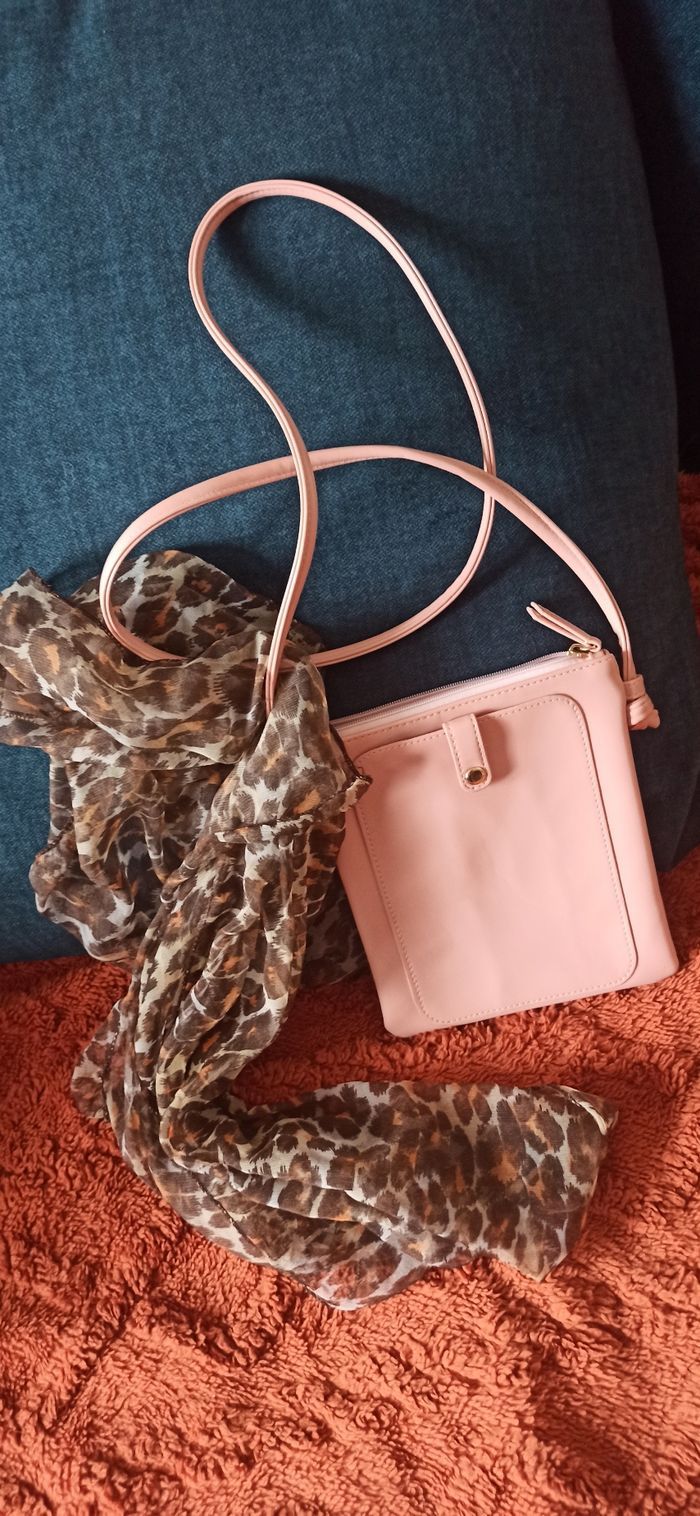 Sac a main rose foulard léopard