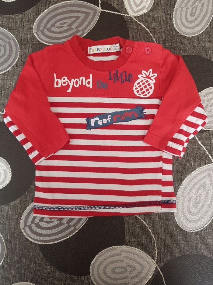 Vends de nombreux autres articles en taille 6 mois : bodies manches courtes et manches longues, brassière, combinaisons, gilet, pantalon, pull, pyjamas, salopette, t-shirt manches longues, vestes, manteaux, ... Vends également des vêtements en 0, 1 et 3 mois ... ... et des accessoires comme une chancelière, des turbulettes, un sac à langer, un tapis de sol, ... Réduction possible en fonction du nombre d'articles N'hésitez pas à me contacter ...
