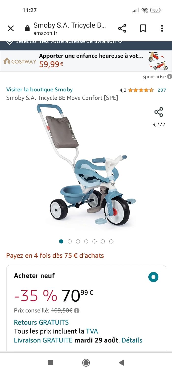 Vélo évolutif Smoby en bon état juste une visse a remettre sur la poignée ( voir photo )