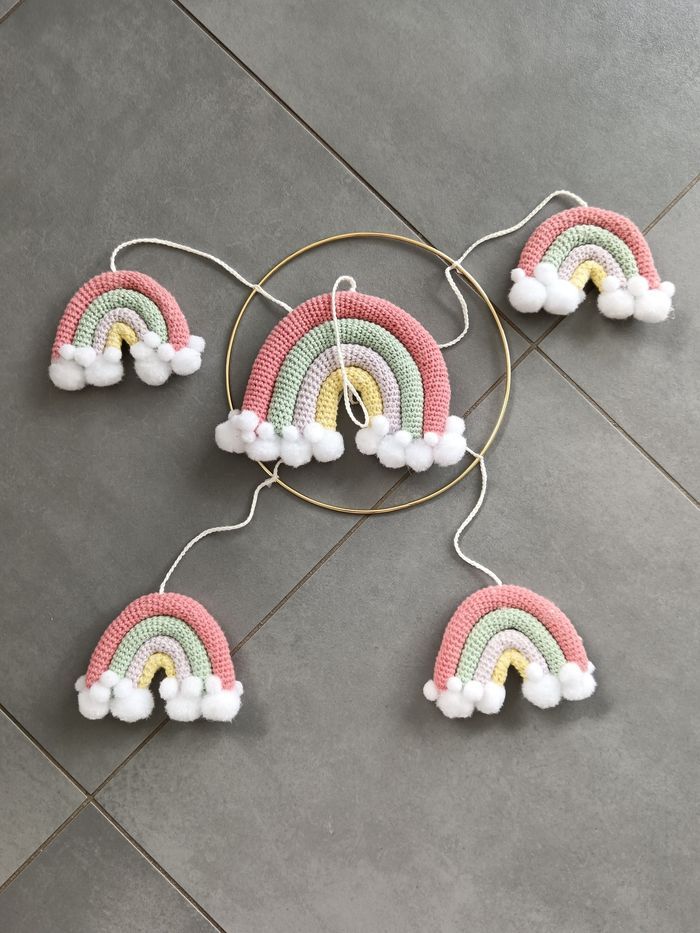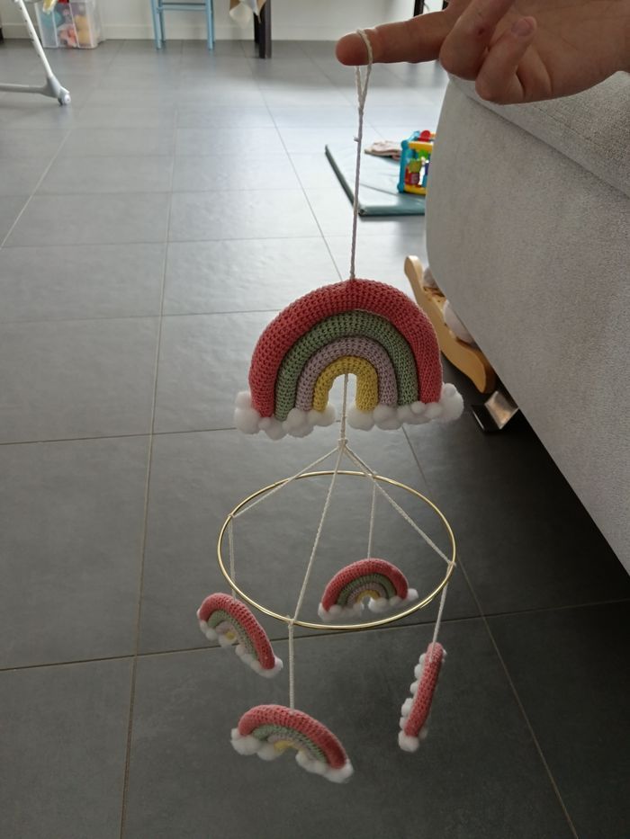 Très joli mobile bébé en macramé, motif arc-en-ciel. Neuf, jamais utilisé.