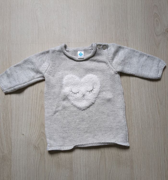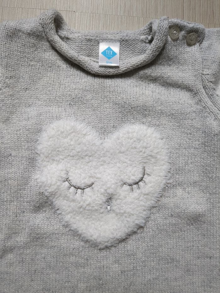 Pull gris cœur Tex 9 mois - photo numéro 1