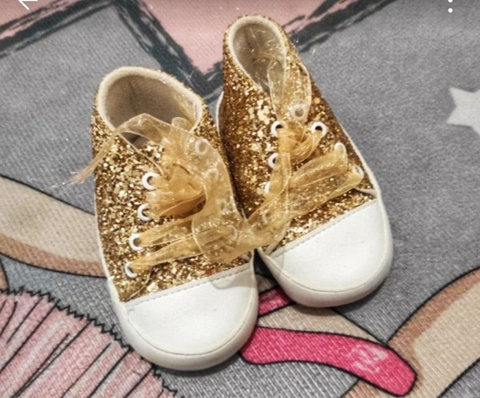 Baskets à paillettes Taille 20 Rarement portés Lacets en ruban