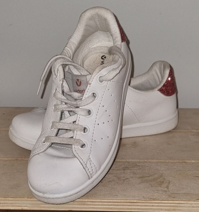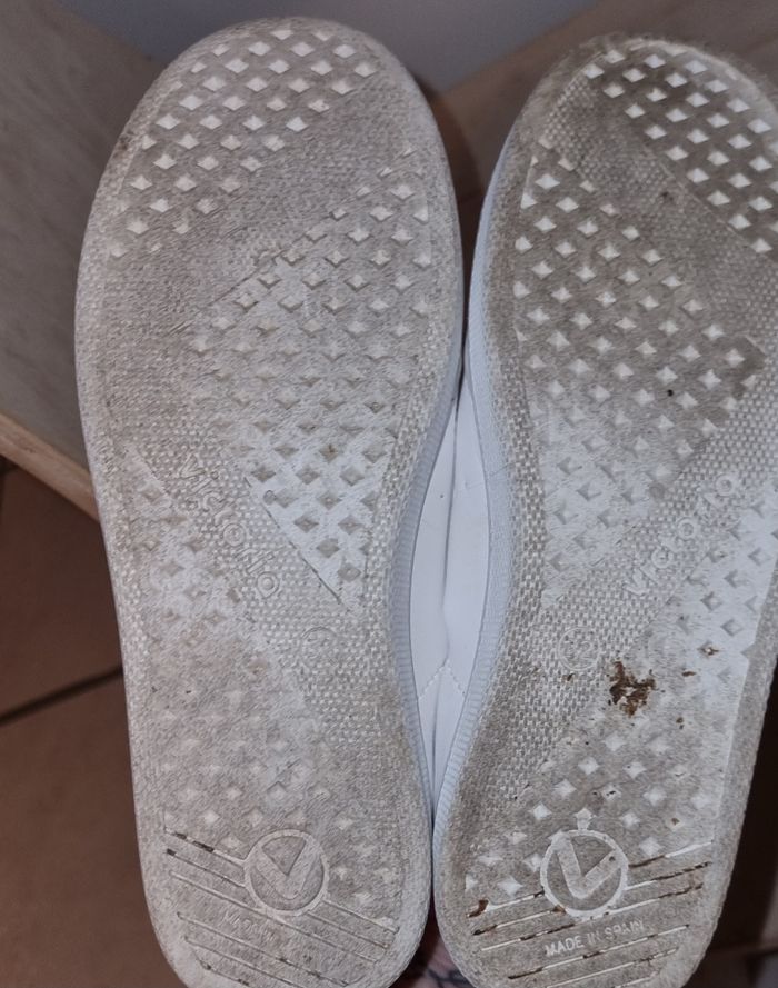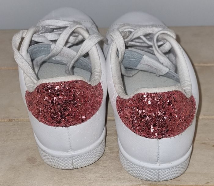 Très peu portées. Je mets "bon état" pour les lacets qui sont un peu sales. Paillettes au dos des chaussures.