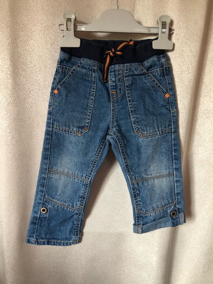 Jeans qu’on peut relever avec les pattes boutons 100% coton Bleu et orange Facile à mettre, Ceinture élastique en bord côte Taille 18 mois 77-82 cm Kiabi