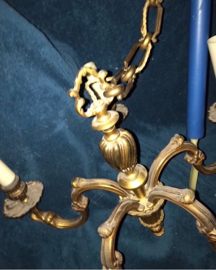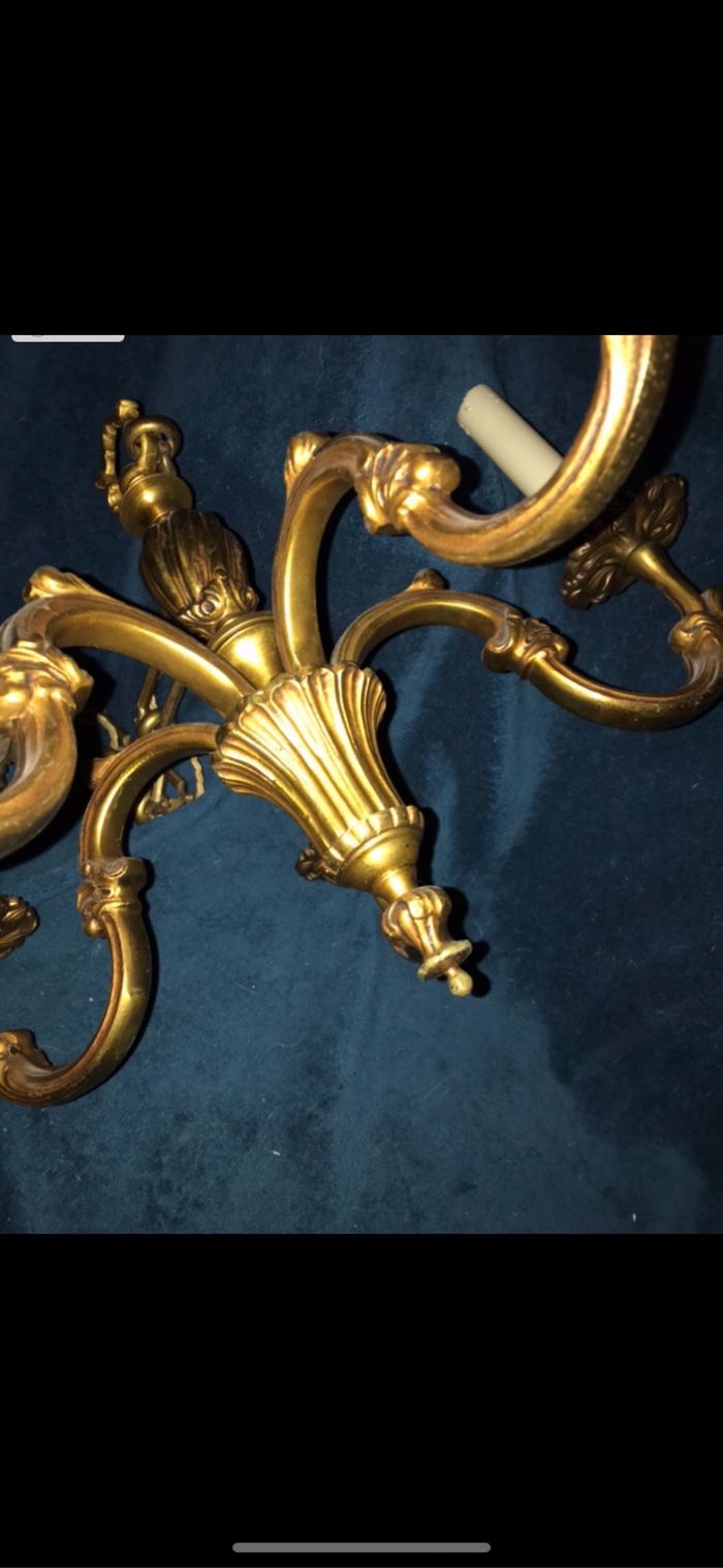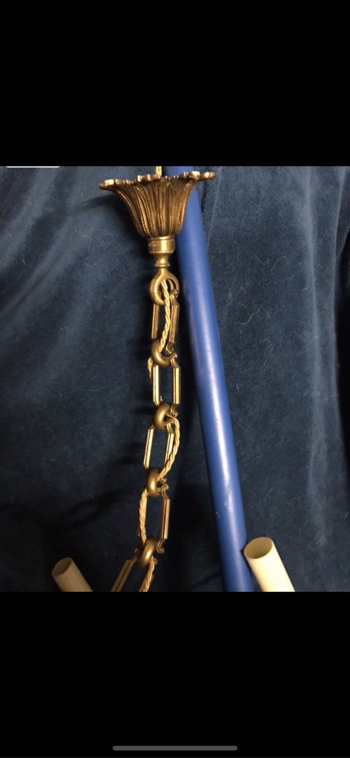 Lustre en bronze ou cuivre jaune je ne sais plus avec abat jour blanc