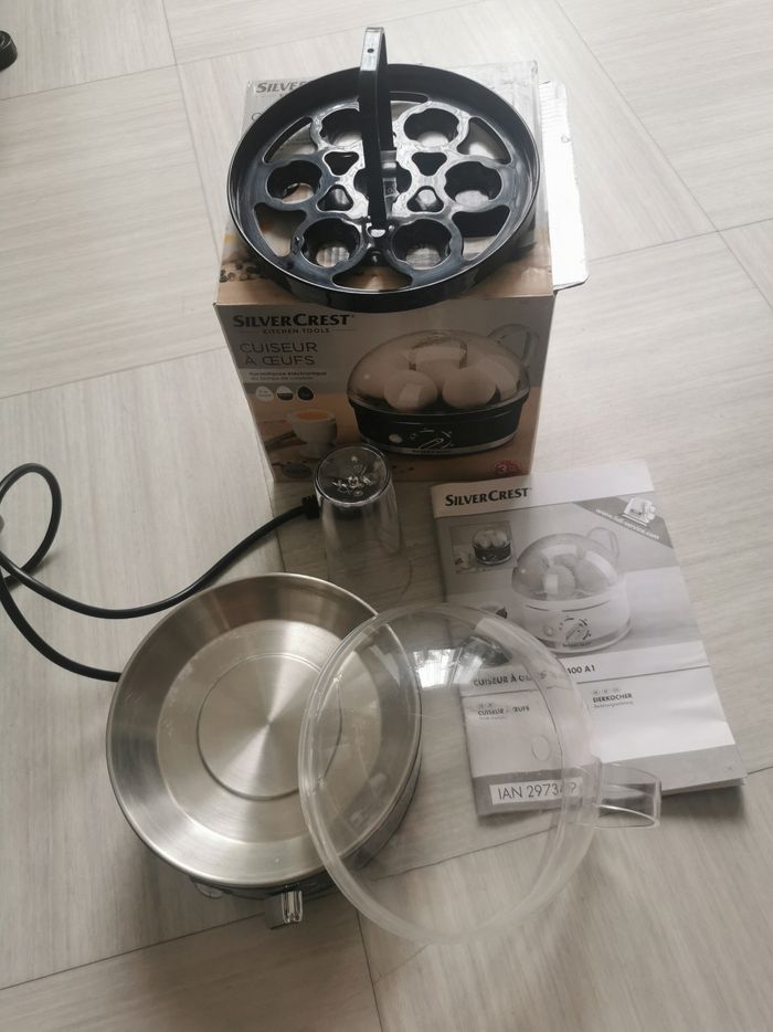 Fonctionne parfaitement Quelques tâches sur le support à oeufs Carton abîmé