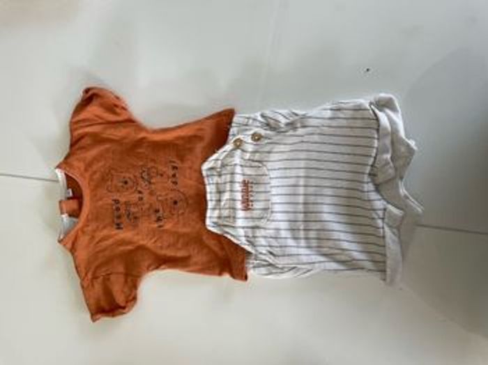 Vends salopette short + t-shirt Winnie l’ourson porté 1 fois. En très bonne état. Taille 1 mois