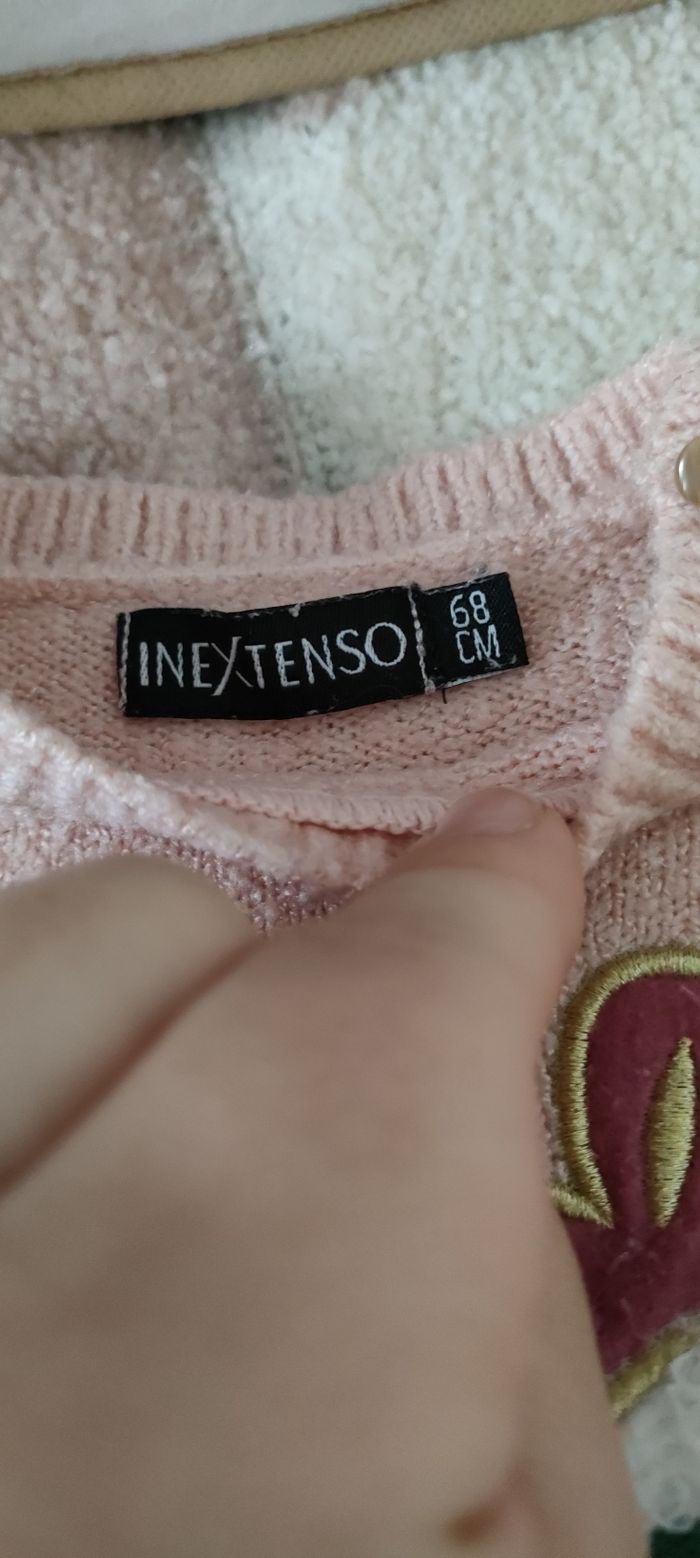 😻 Pull / Robe chaude bébé fille 😻 Manches longues 😻 Marque In Extenso 😻 Taille 6-9 mois (68 cm) 😻 Très bon état (juste un peu pelucheux)