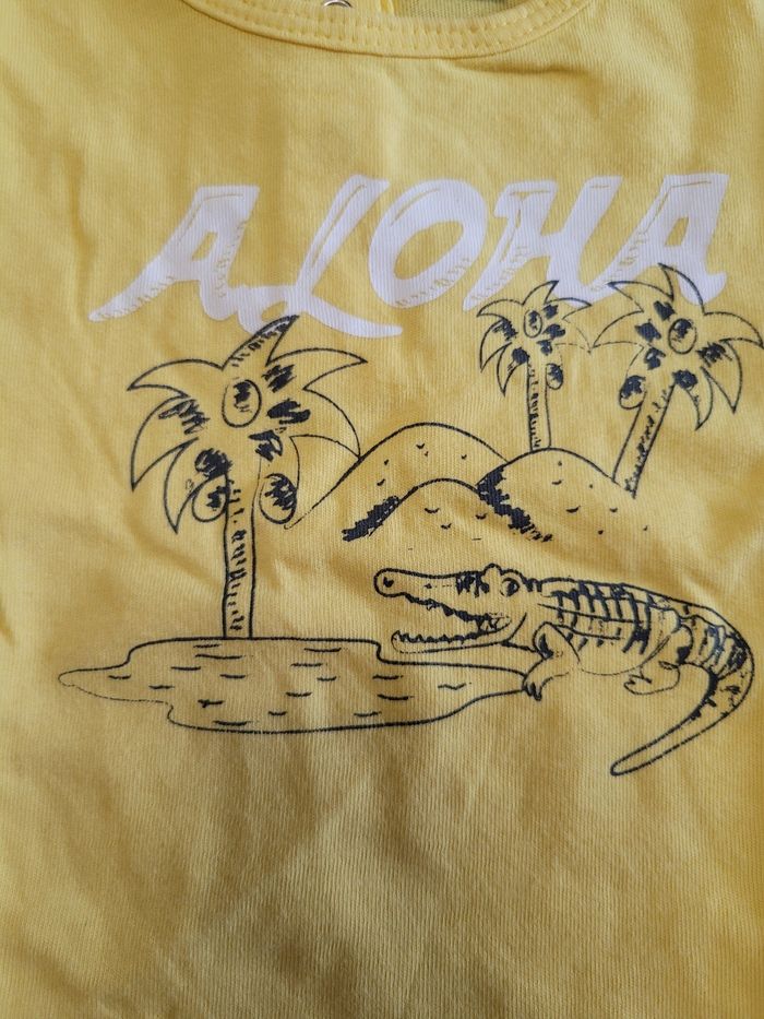 Petit T-shirt Manche court Couleur jaune Taille 12 mois Toutes saison Attaché dans le dos Matière 100% coton