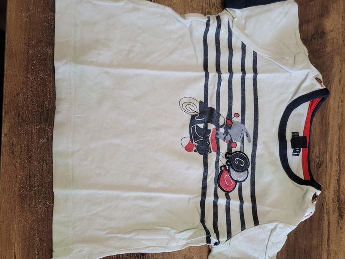 Petit T-shirt Manche court Taille 12 mois Couleur blanc et bleu marine Toutes saison Matière 100% coton