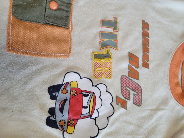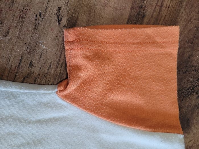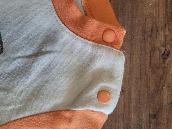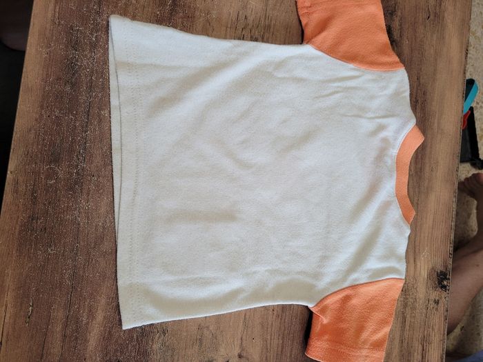 Petit T-shirt Manche court Couleur beige et orange Taille 12 mois Attaché en haut a gauche Tous saison Matière 65% polyester 35% coton