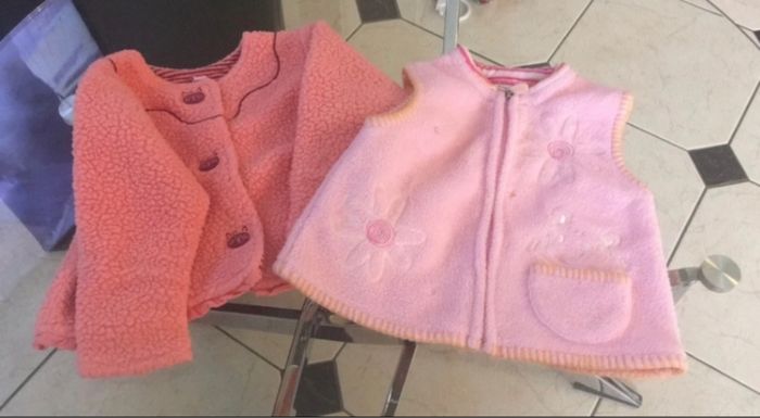 Vend lot de 2 gilets, un manches longue et l autre sans manche en taille 6 mois En très bon état