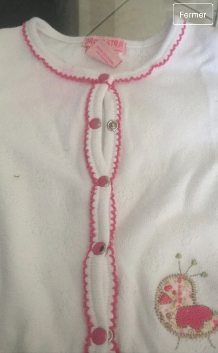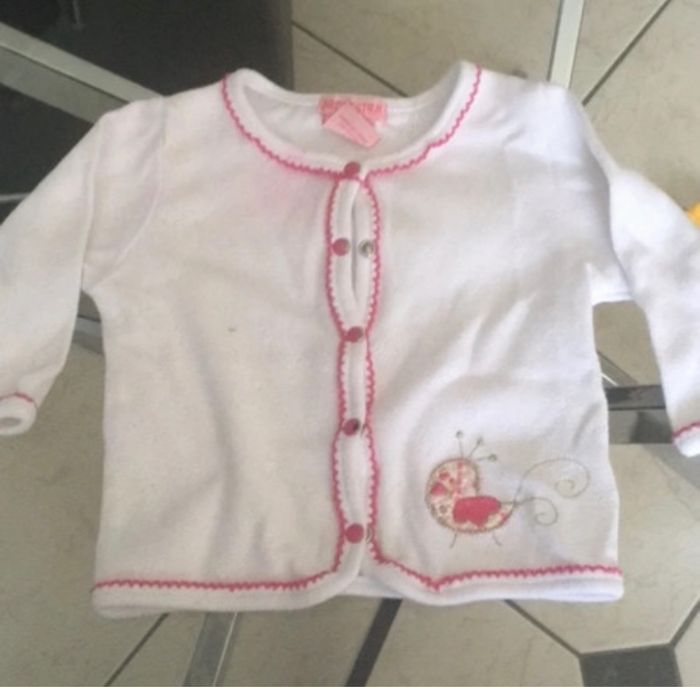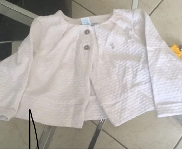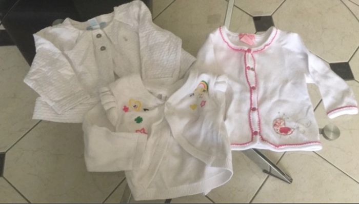 Vend lot 3 gilets (boleros) Demi saison en taille 6 mois. Les deux boléros sont en excellent état et le gilet orchestra a une tâche rose de décoloration et la couleur des pressions qui s en va Marques: orchestra et Obaibi