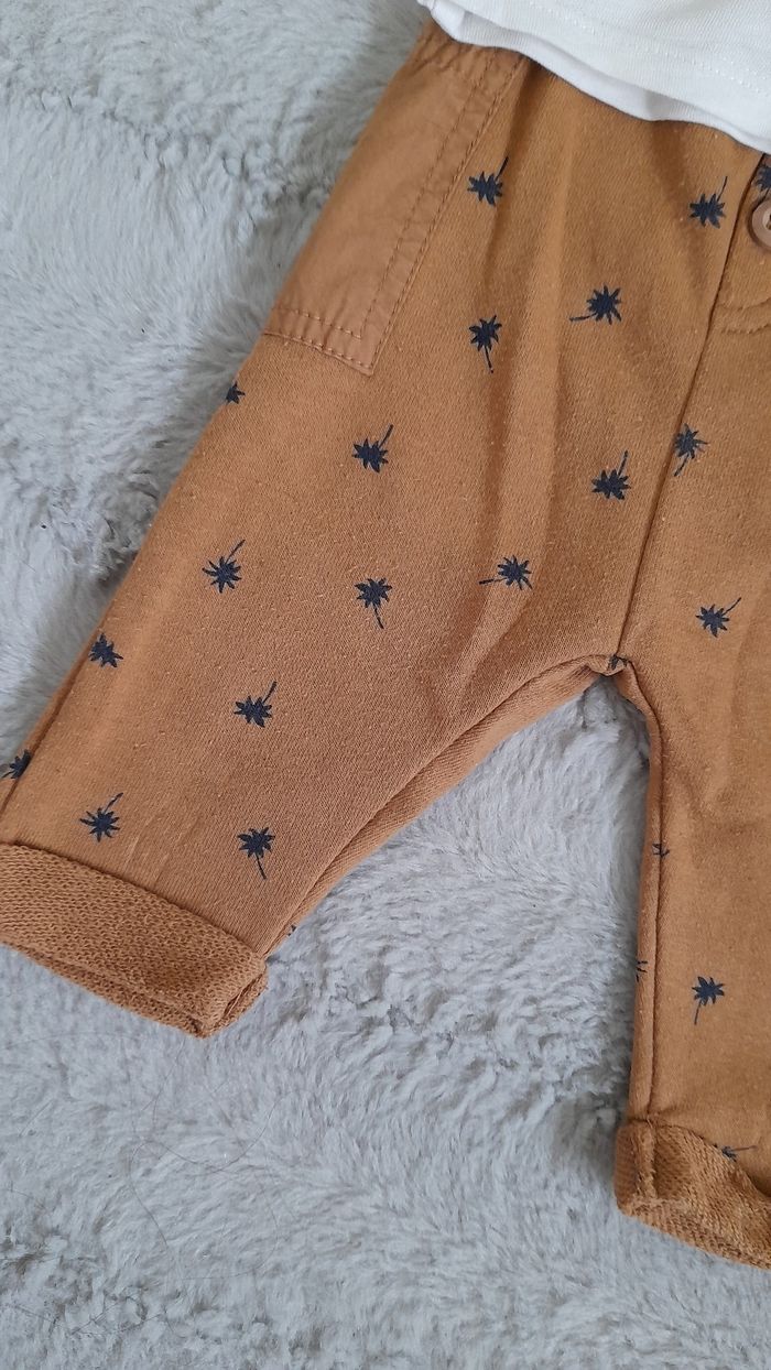 Super petit ensemble en 3 mois ! Le pantalon a été porté plusieurs fois. Il bouloche un peu mais c'est très très léger. Le t-shirt est en très bon état
