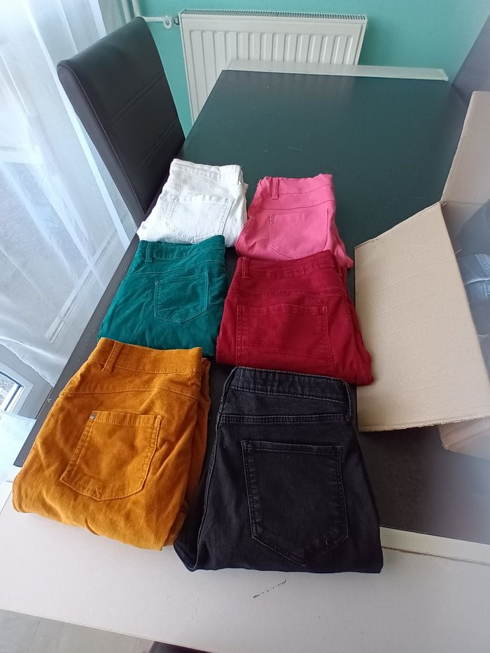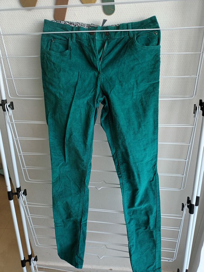 Divers vêtements très très peu portés Les pantalons sont de taille 12 ans. Prix 5eu l'unité. Le vert et le jaune moutardes, aspect velours sont de orchestra. Le vert paraît plus foncé avec mon téléphone. En tout ce n'est pas du vert canard. Le rose de vertbaudet. Le rouge de okaidi. Le blanc et noir de h&m. Peut être vendu en lot ou à l'unité Également disponible robe , jupe et short(taille entre 12 et 14ans)