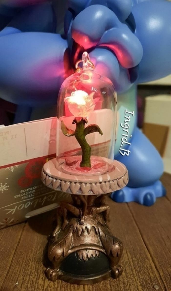 Ornement la rose de la belle et la bête. La rose s'illumine lorsqu'on appuie sur le bouton. Provient de shopdisney et est vendu dans sa boîte dorigine. D'autres ornements en vente dans mon dressing,n'hésitez pas à regrouper vos achats.