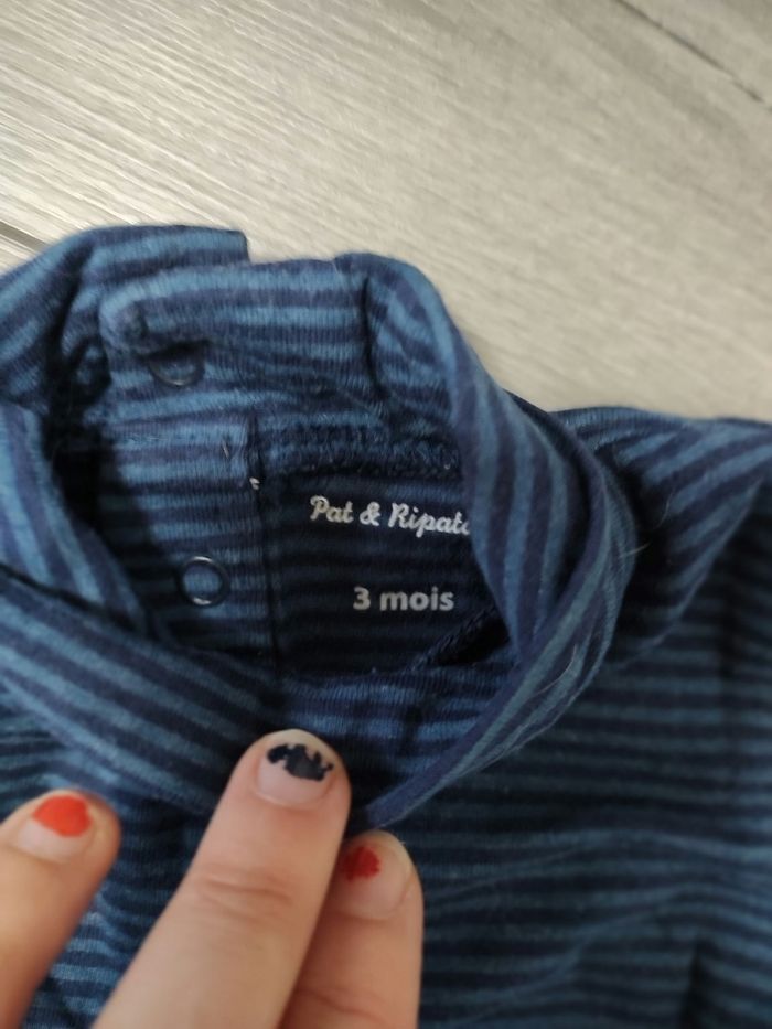 T-shirt col roulé sous pull 3 mois bleu rayé - photo numéro 2