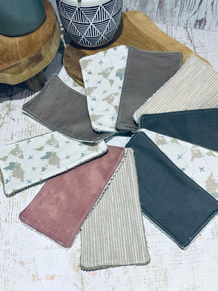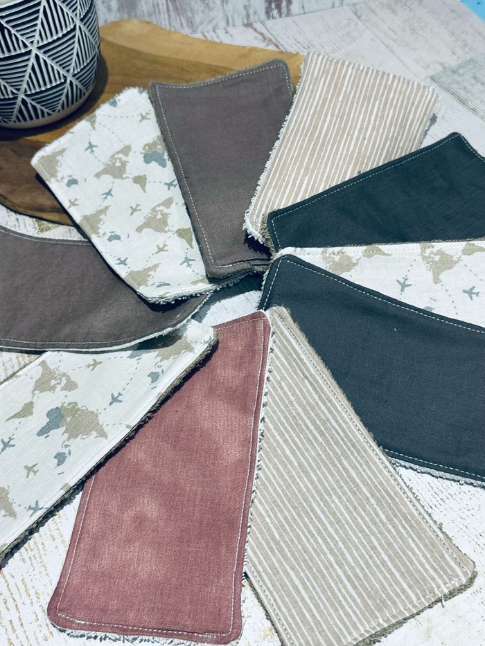 Lot de 10 lingettes lavable démaquillante avec un côté en éponge en coton lavable à 30° Pas de sèche linge Rectangle de 9x15cm environ Si vous souhaitez des photos supplémentaires envoyez moi un message Envoi rapide et soigné Toutes les lingettes sur @ateliersdisalingettes