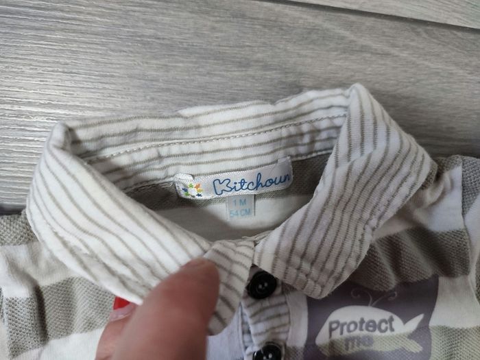 Polo kitchoun rayé blanc marron 1 mois très bon état - photo numéro 3