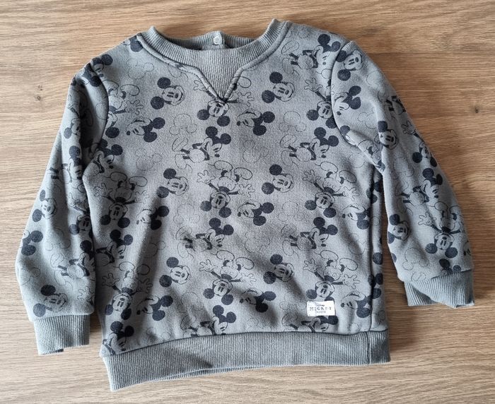 Pull kaki Mickey Taille: 24mois Très bon état Lavé lessive bébé