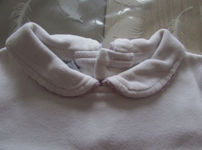 T-shirt à manches longues avec col en très bon état. Fermeture par boutons dans le dos. Taille: 9 mois d'autres vêtements ici #ysatis13fille9mois N'hésitez pas à faire un lot pour profiter des remises activées #tshirt #bébé #fille #9mois #blanc #souris #mauve