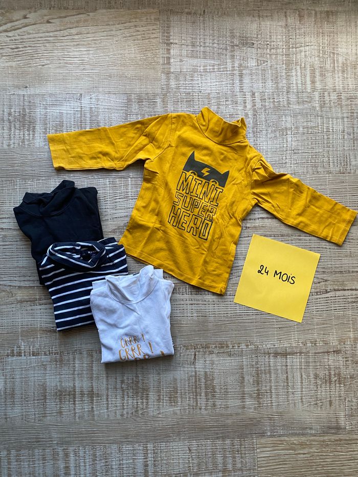Lot de 4 tee-shirts à manches longues de la marque Kiabi en très bon état. Taille : 24 mois