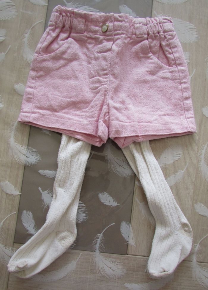 Très joli ensemble short tout doux + collants de chez Kiabi. Le short est en excellent état, les collants sont un peu usés donc je les offre. C'est super joli porté. Taille: 9 mois - d'autres vêtements ici #ysatis13fille9mois N'hésitez pas à faire un lot pour profiter des remises activées #ensemble #short #collants #kiabi #9mois #rose #crème #automne #hiver #bébé #fille