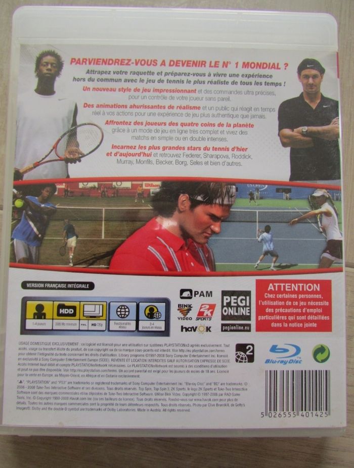 Jeu pour Playstation 3 Topspin 3 en très bon état. Dès 3 ans. D'autres jeux vidéos ici #ysatis13jeuvideo N'hésitez pas à faire un lot pour profiter des remises activées #jeu #video #ps3 #playstation3 #tennis #3ans