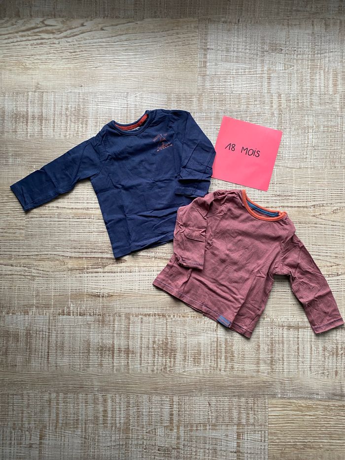 Lot de 2 tee-shirts à manches longues en très bon état de la marque Vertbaudet. Taille : 18 mois