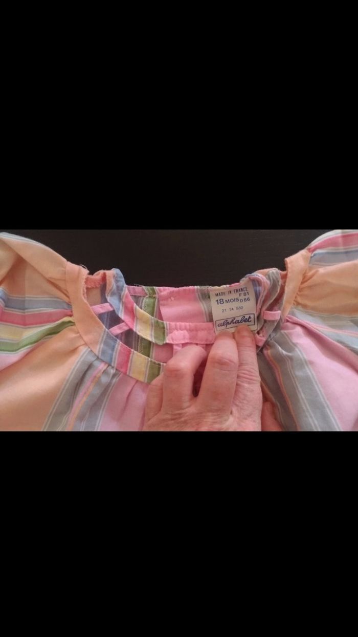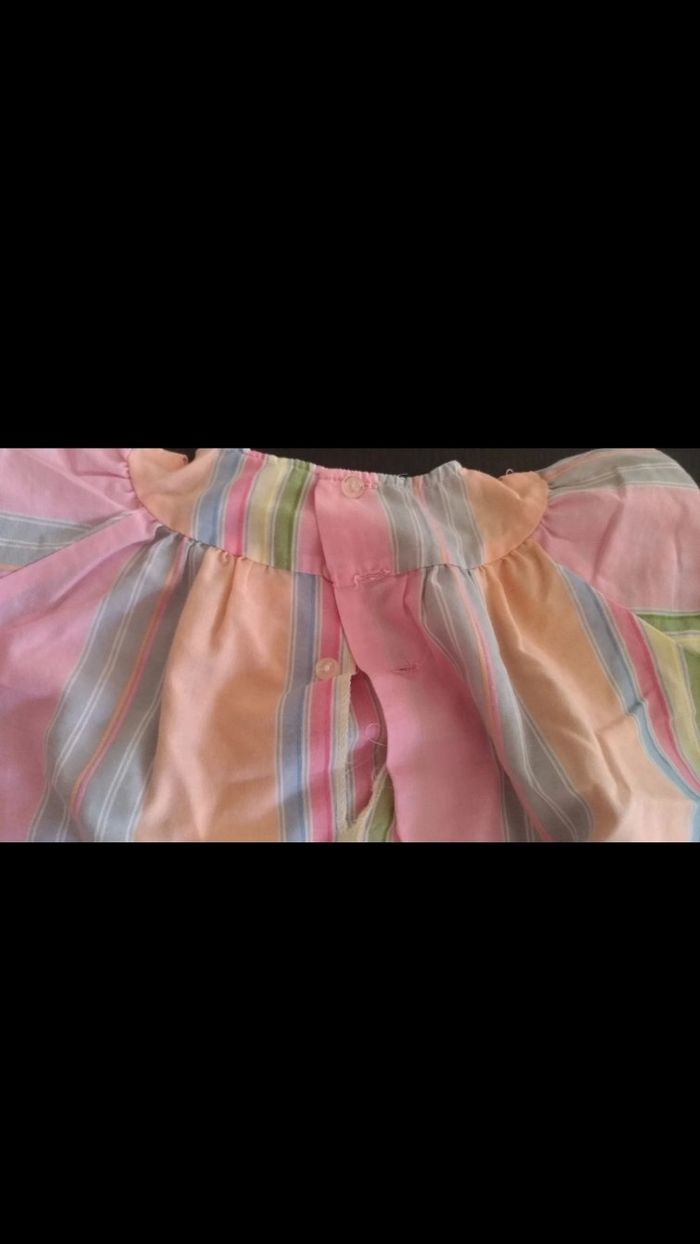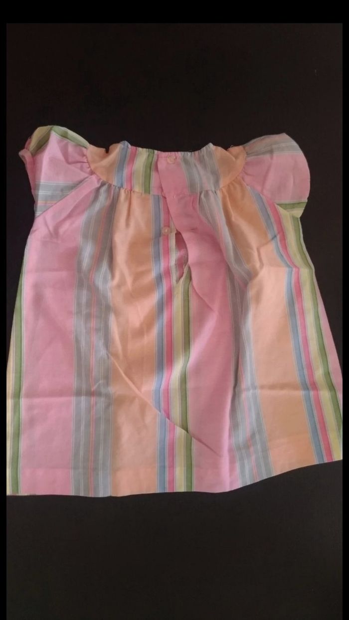 Robe colorée, à rayures, 3 boutons dans le dos en haut. Bon état.