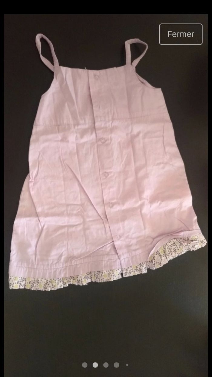 Robe evasée, bretelles fines, lien à nouer devant, boutons au dos sur toute la hauteur de la robe. Portée quelques fois, bon état.