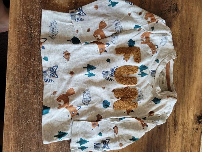 Petit T-shirt Manche longue Mi saison Taille 9 mois Couleur gris animaux Matière 99% coton 1 % viscose