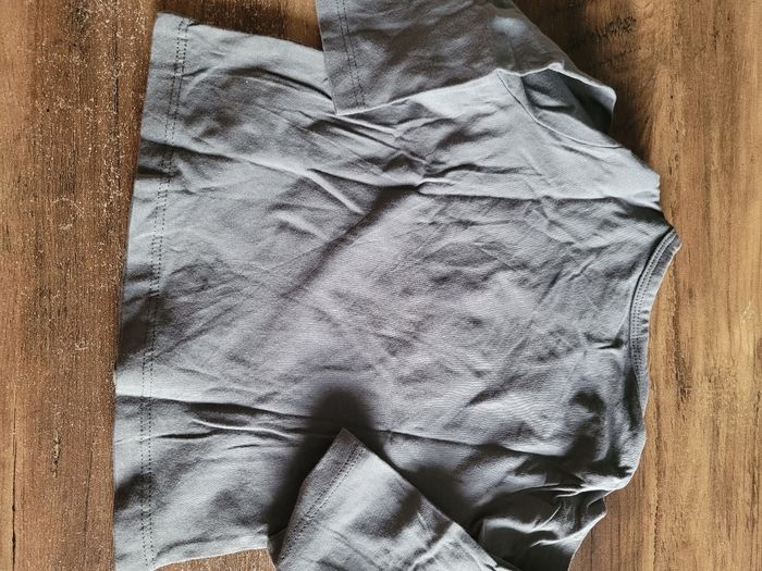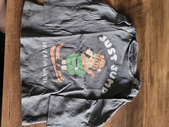 Petit T-shirt Manche longue Couleur gris Taille 9 mois Mi saison Attaché en haut a gauche Matière 100% coton