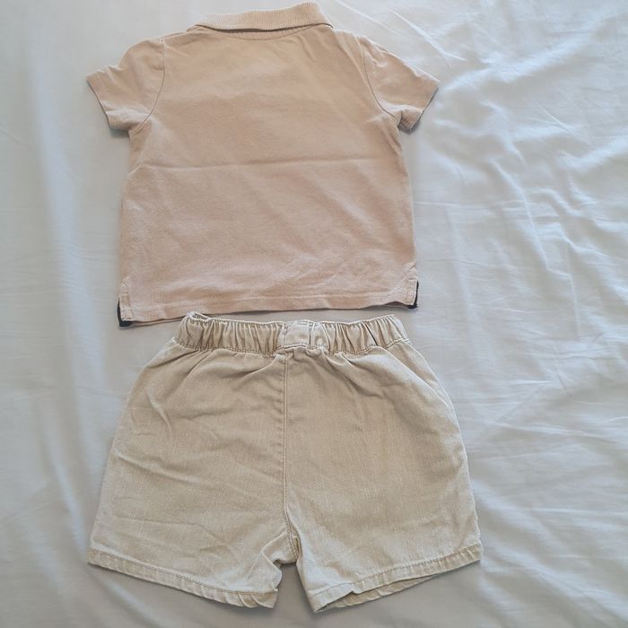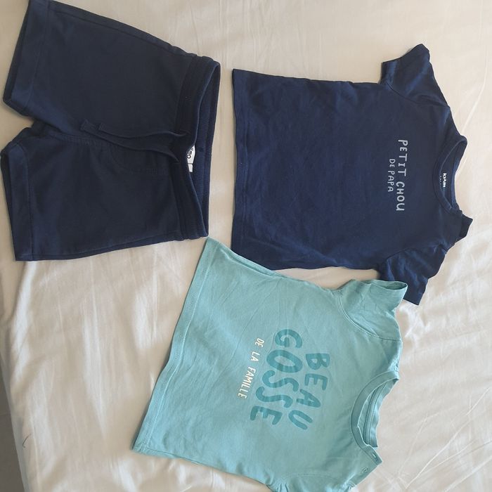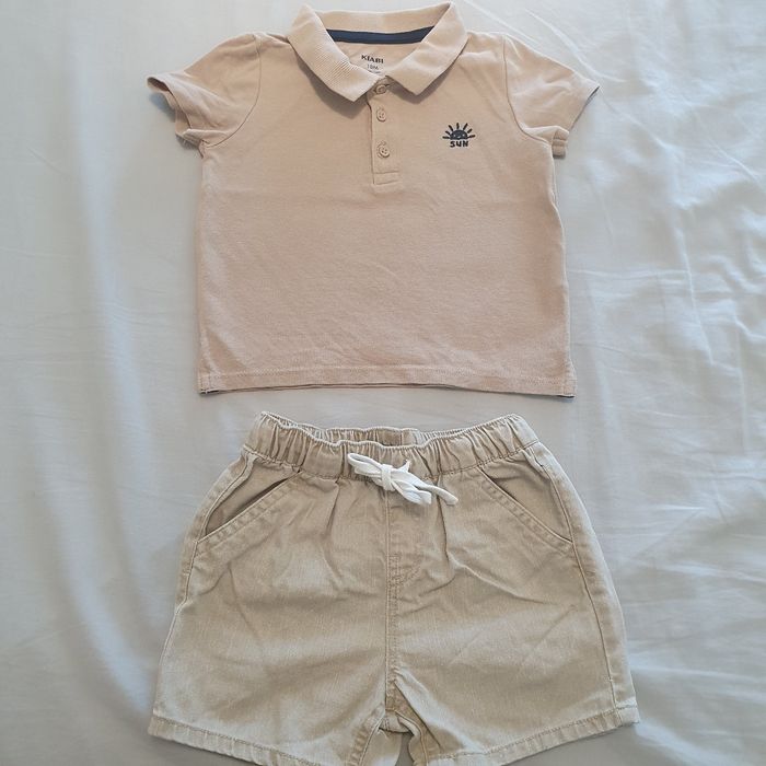 Lot bebe 2 Tee-shirt fin 1 short bleu foncé ( gemo ) 2 Tee-shirt polo 1 short beige ( Kiabi ) Taille 18M N'hésitez pas à me contacter si vous souhaitez acheter à l'unité ou modifier votre lot .