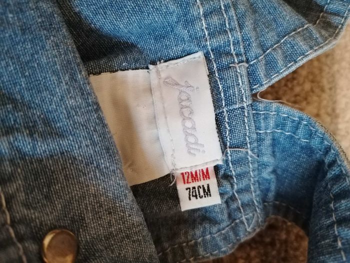 Salopette short en jean taille 12 mois marque Jacadi Idéal avec ses pressions entre les jambes