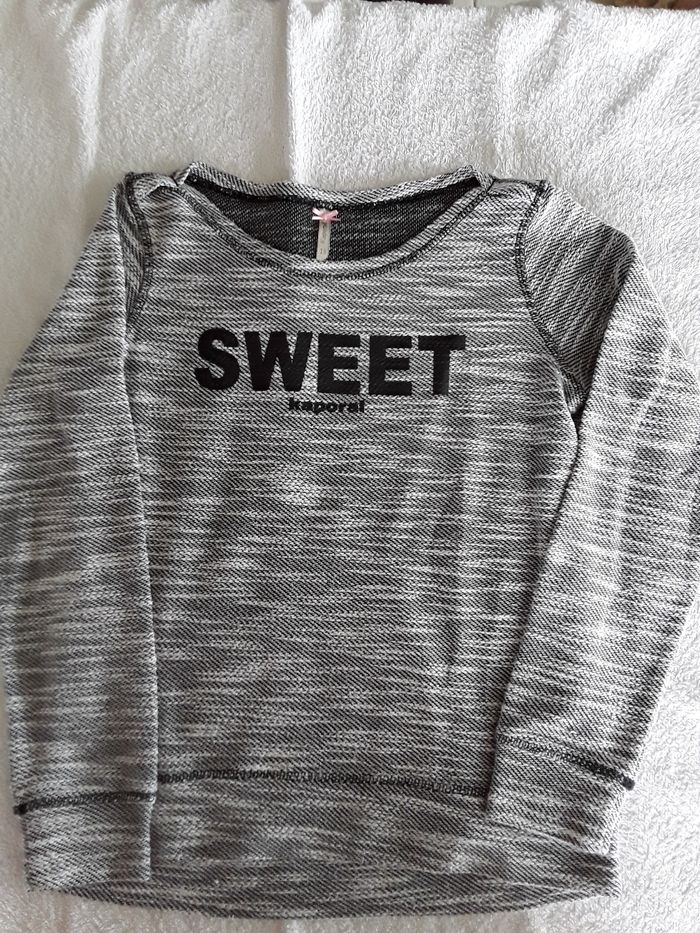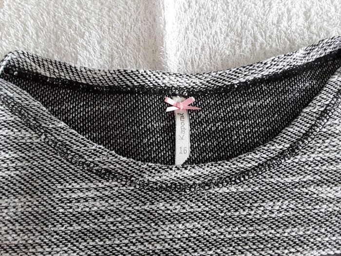 Je vend un pull gris chinė Kaporal avec écriture sur le devant. En taille 16 ans