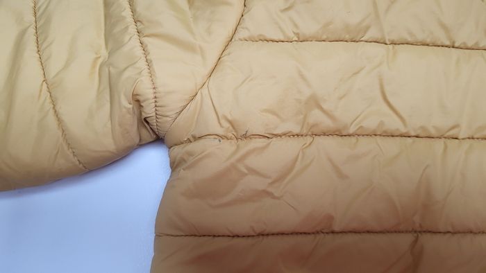 Veste jaune légère, idéale pour le printemps. Une petite tâche à l'arrière de la veste au niveau de la pliure.