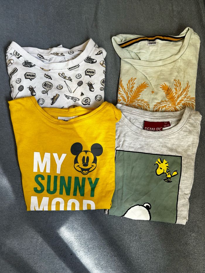 Je vend ce lot de 4 t shirt manche courte en bon état sauf un avec une légère tache (voir photo 2)