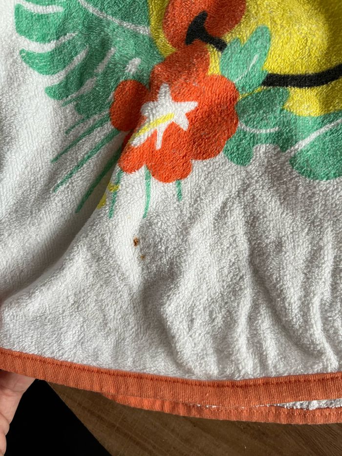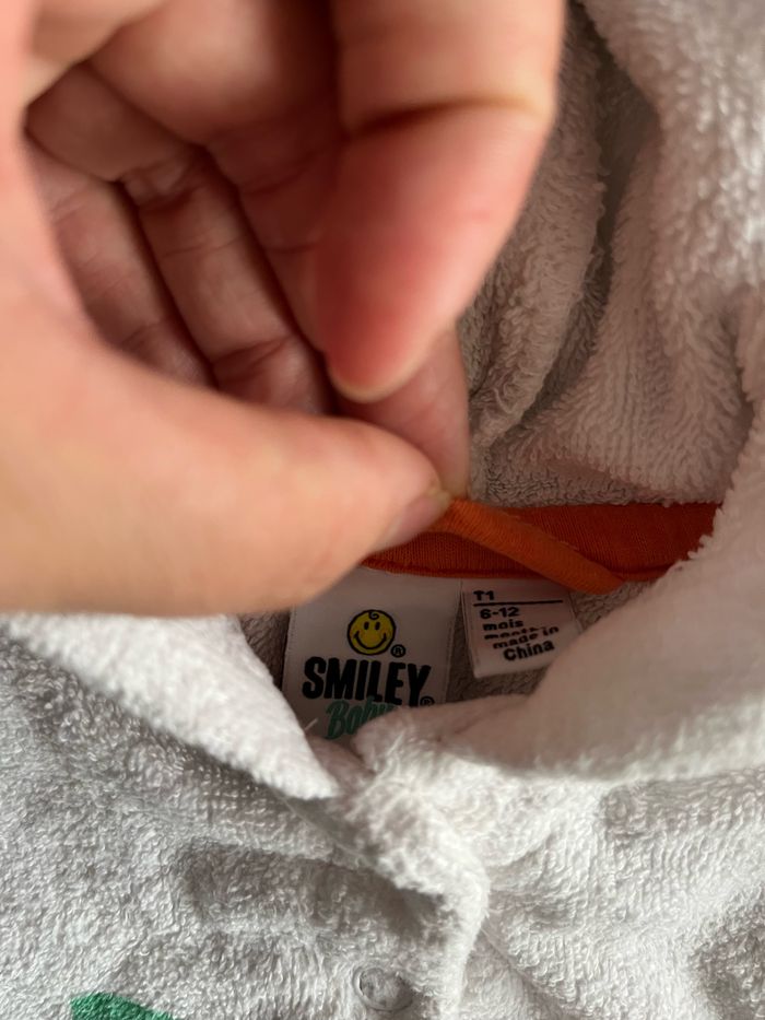 Poncho de bain en très bon état juste une petite tâche (voir photo) Taille 6-12 mois Marque Smiley Baby de chez Orchestra