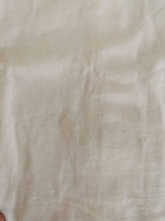 T-shirt rose avec col en lin à motifs croisés irisés. Il est neuf sans étiquette seulement lavé, il a été offert trop tard à ma fille. J'offre le deuxieme t-shirt de la même marque car il a des taches.