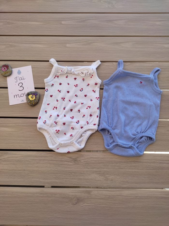 Lot de deux bodies à bretelles. Taille 3 mois. Marque Kiabi. Très peu porté