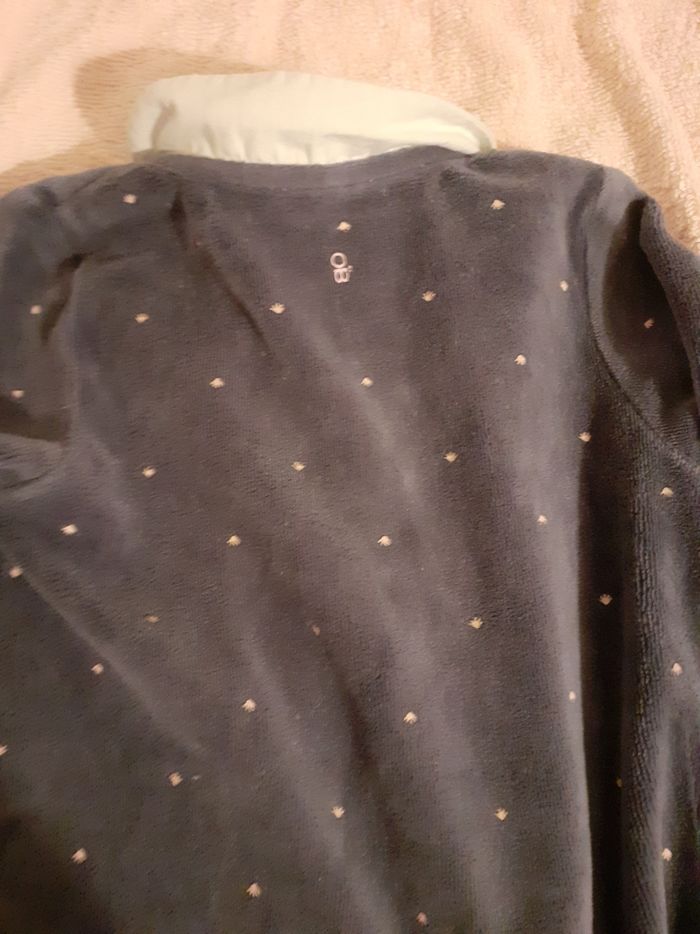 Pyjama velours obaibi Taille 6 mois Bleu foncé avec petit col , fermeture.par pressions sur le devant. Porté mais très bon état