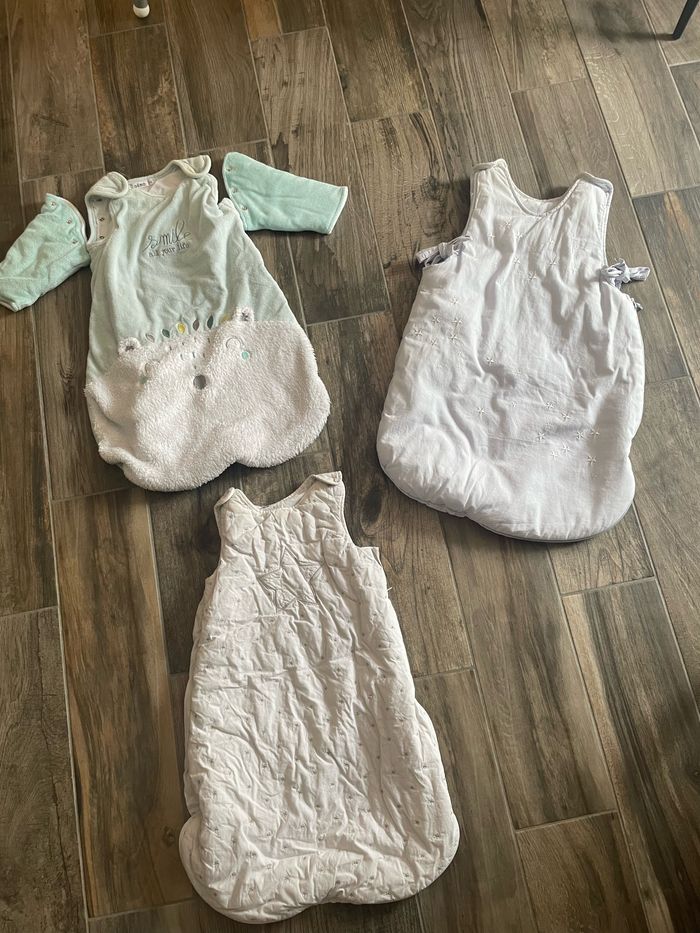 Lot de trois gigoteuses 0/6 mois L’une est légèrement tachée (cf photo) Idéal automne/ hiver
