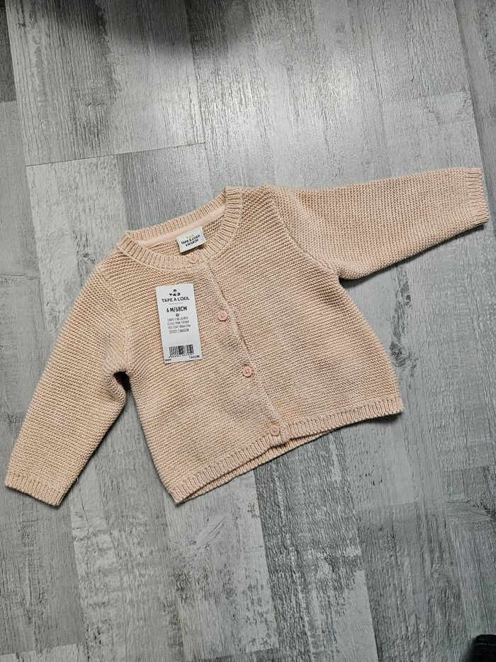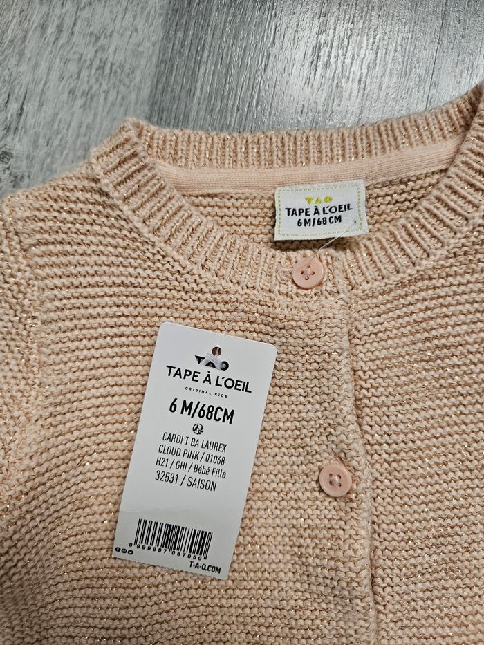 Gilet en laine pailleté, épais. Acheté pour les fêtes et finalement il faisait pas assez froid donc je ne l'ai jamais mis à ma fille, il est neuf Taille 6 mois