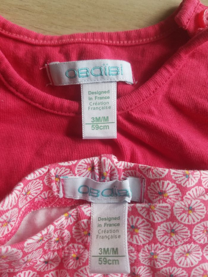 Ensemble fille 3 mois Tee shirt et short Obaïbi Très bon état