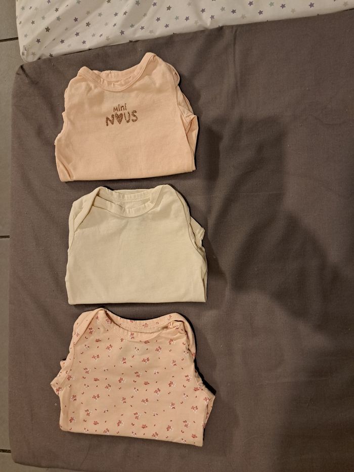 Lot de 3 bodies tape a l'œil 3 mois. Jamais mis juste laver. Ma fille ne rentre pas dedans.