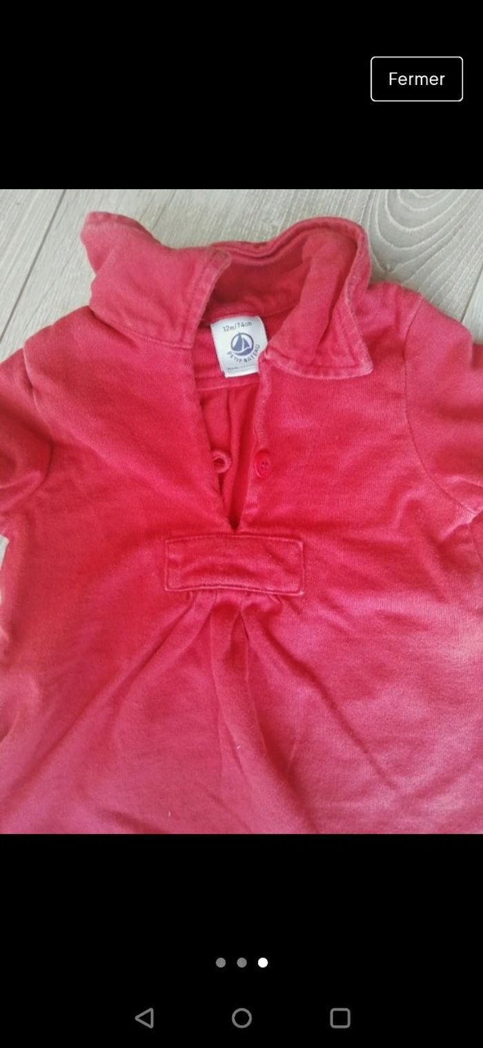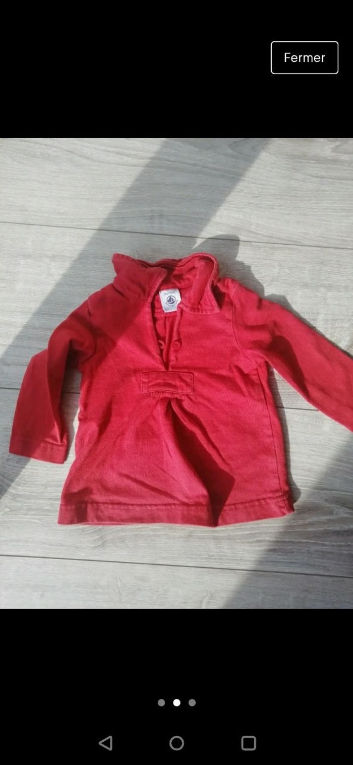 Vareuse petit bateau Rouge / orange Légère trace d'usure notamment au niveau du col mais est en bon état 12 mois