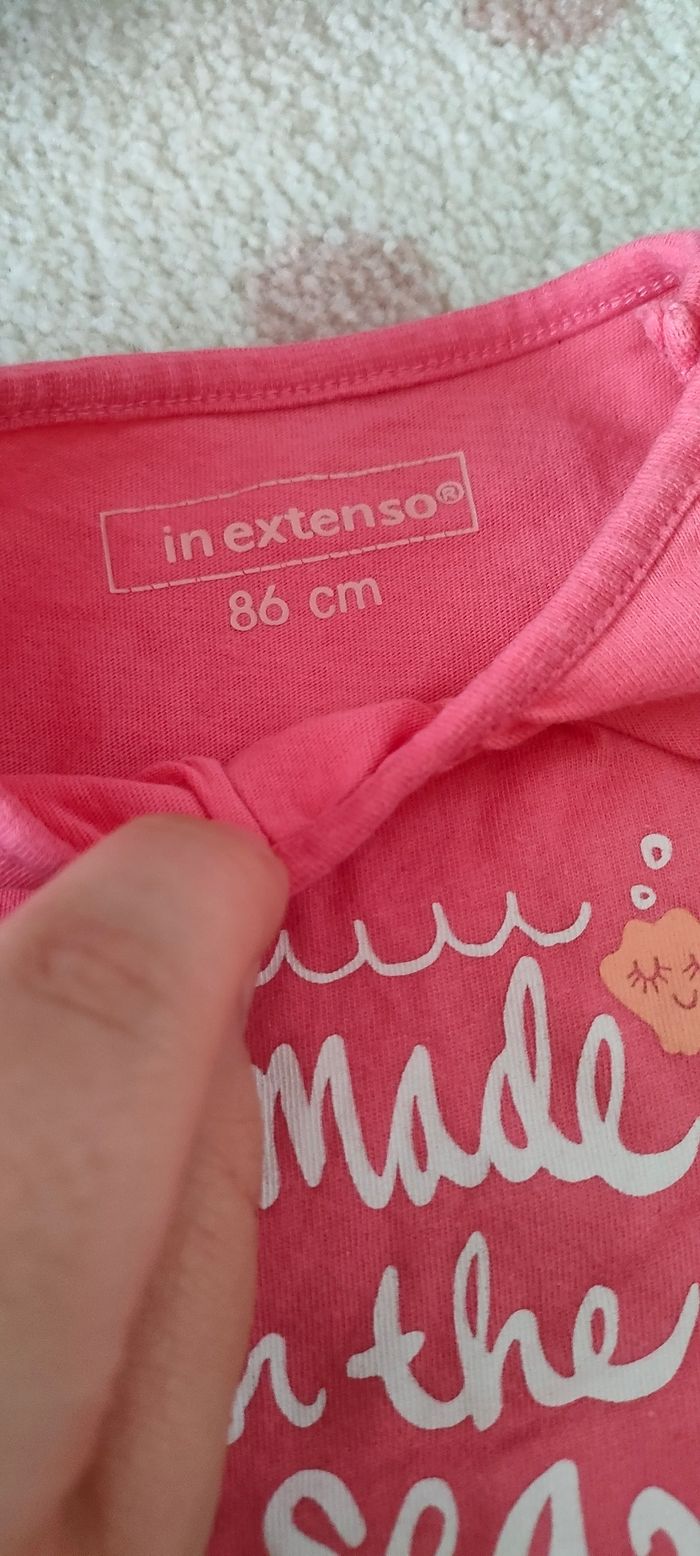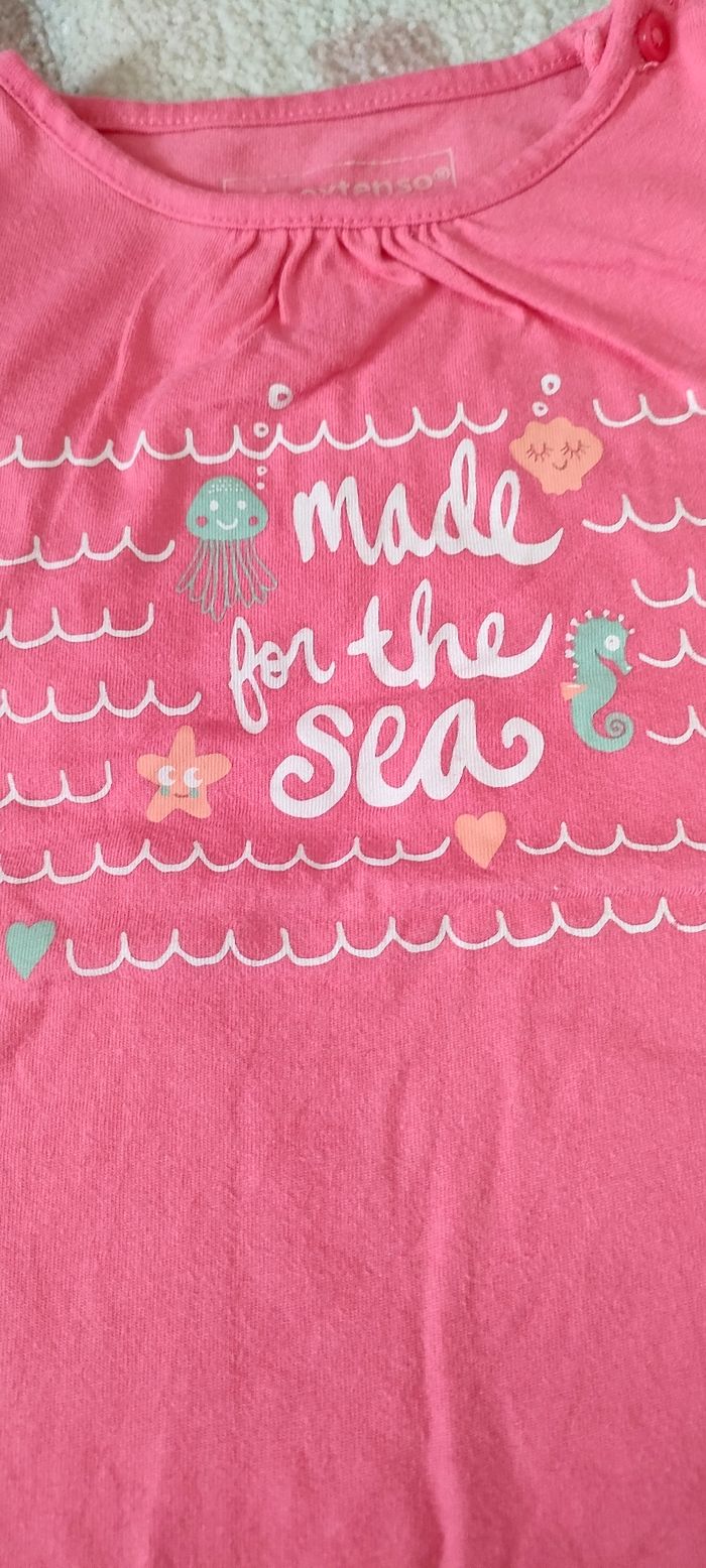 😻 Tee shirt bébé fille 😻 Manches courtes 😻 Thème "Mer" 😻 Marque In Extenso 😻 Taille 18 mois (86 cm) 😻 Très bon état général (il manque juste un bouton au niveau de l'épaule)