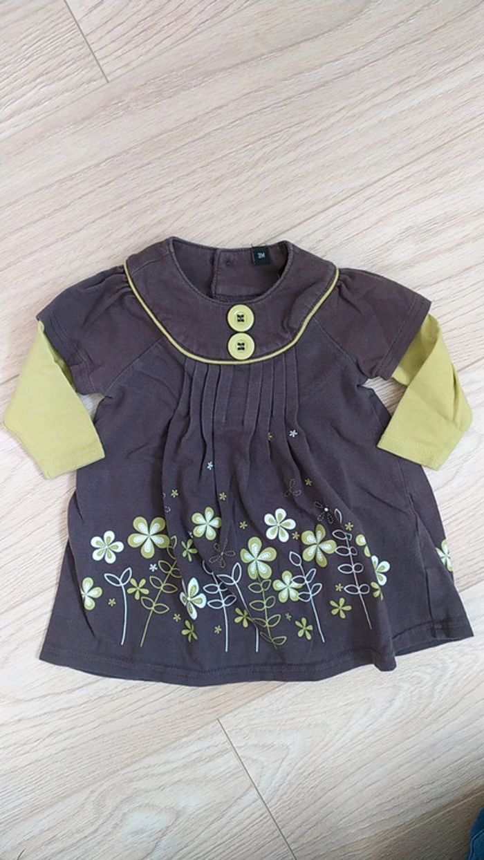 Robe 3 mois marron verte fleurs ML - photo numéro 1