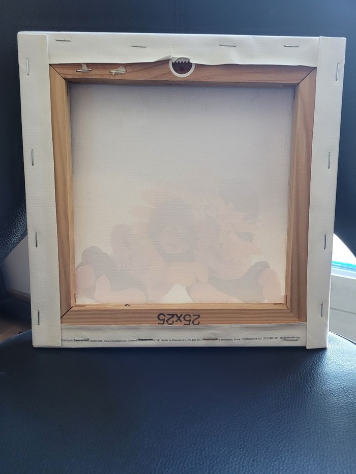 Toile représentant deux bébés déguisés en tournesol. Bon état